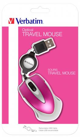 Egér, vezetékes, optikai, kisméret, USB, VERBATIM "Go Mini", ezüst-ciklámen