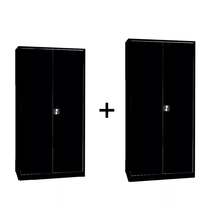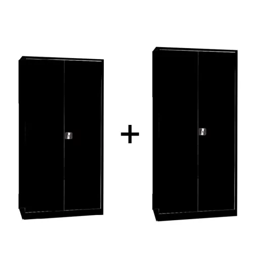2 db szárnyasajtós fém irattároló szekrény (WING-18 + WING-19), Fekete/fekete